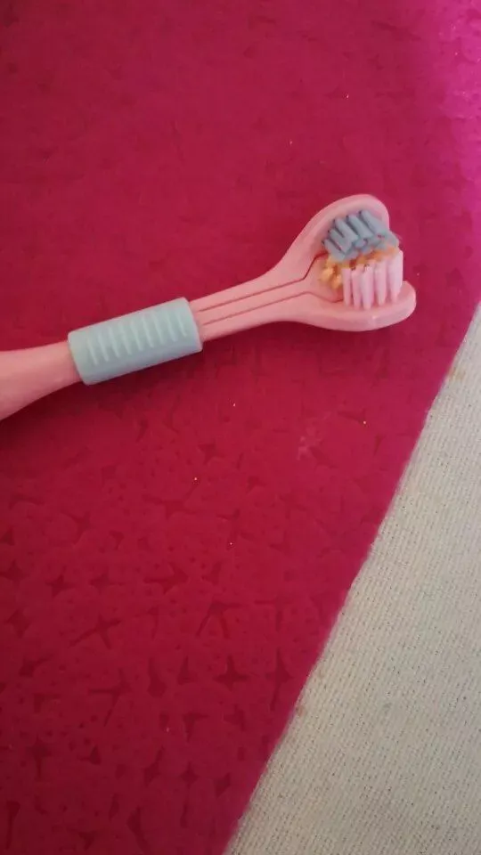 I'm really pleased with these toothbrushes. My grandson, who has autism, absolutely detests brushing his teeth. I think it's the ticklish sensation or just the overall feeling he dislikes. He's sensitive to certain types of touch, like brushing hair, so toothbrushing is a real challenge. These brushes make it a bit easier since they cover more surface area. With this one, you practically clean the entire tooth in one go, making it quicker and easier. Anything that makes things quicker and easier for him is a win for all of us. Any other parents of autistic children will surely understand what I mean. These brushes work wonders, and we'll keep using them until we find something even better.