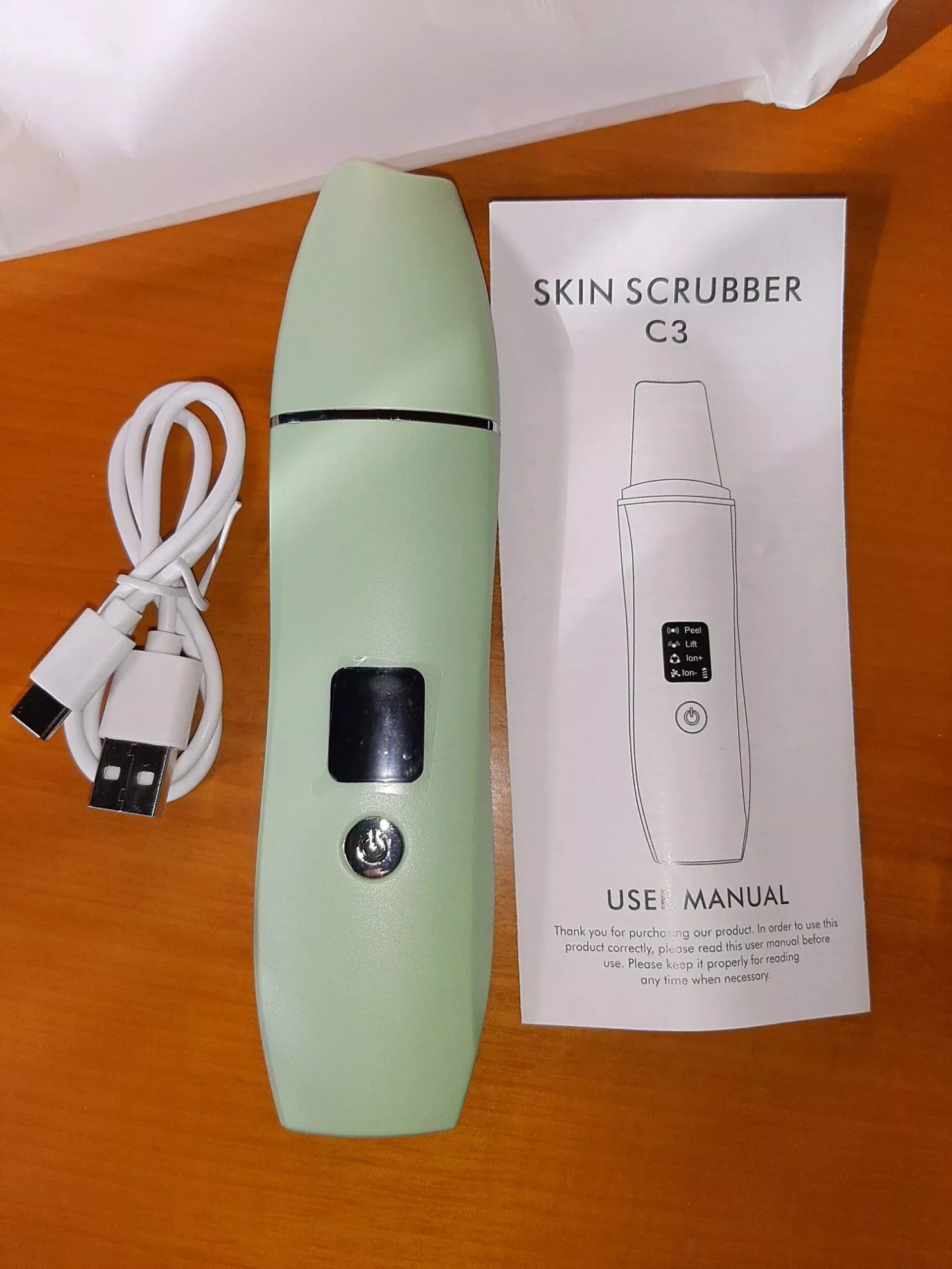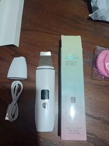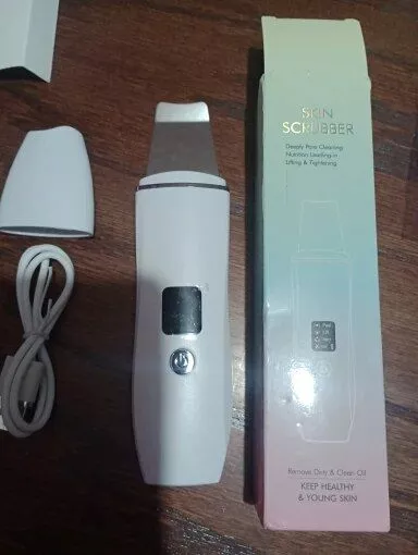 i recently bought this ultrasonic skin scrubber and it has been a fantastic addition to my skincare routine. using it is simple and the results are amazing. it effectively removes dead skin cells and cleans out pores, leaving my skin feeling smooth and refreshed. the device is lightweight and easy to handle, making it comfortable to use. the ultrasonic vibrations are gentle yet effective, ensuring a deep cleanse without irritation. i’ve noticed a significant improvement in my skin’s texture and clarity since i started using it. it’s also great for helping my skincare products absorb better. i love how my skin feels after each use – soft, clean, and rejuvenated. it’s easy to charge and the battery life is impressive, lasting through several uses. this skin scrubber has truly enhanced my skincare routine. highly recommend it to anyone looking to improve their skin’s appearance and health.