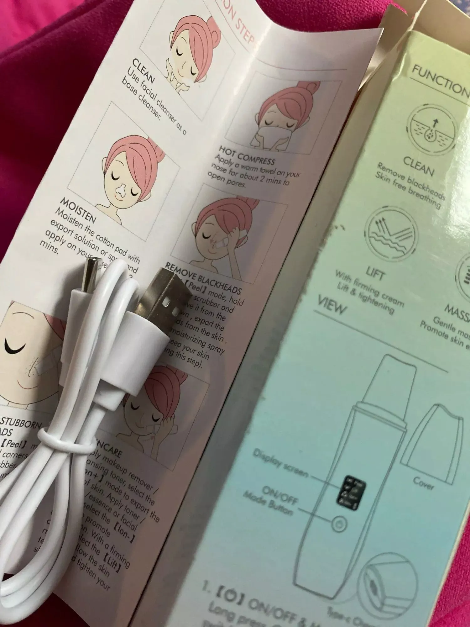 Arrived earlier! It is very nice and works well, the instructions indicate how to prepare the skin and I like that, I tried it dry and with a wet face, dry I get out more than with a wet face, the plate is heated to 3 minutes and I don't know if it is normal or not or if it works like that, But that takes everything out takes everything out. It also has 4 modes and from what I understood one of the modes is so that your serum or what you put "penetrates" the skin, that mode I still do not taste it, but the machine is very cool.