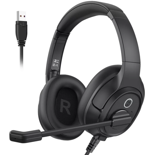 USB Office Headset with Mic, ENC Noise Cancelling, Over-Ear, Busy Light