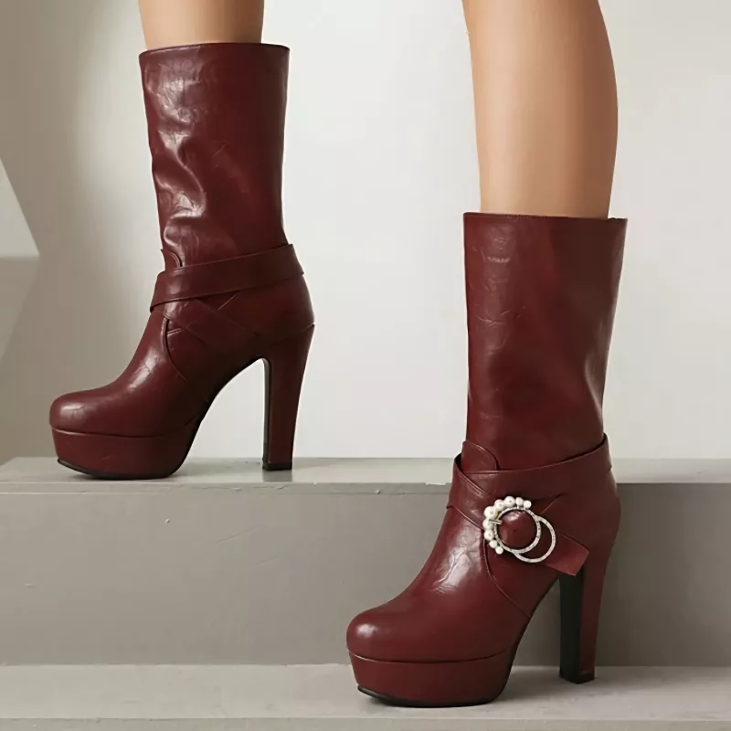 What makes these boots special is their unique blend of fashion and function. They’re bold, elegant, and versatile—everything a woman needs in her footwear collection. Don’t just walk—strut in confidence with these high-heeled mid-calf boots that are made to impress. Order your pair today and step into effortless sophistication.