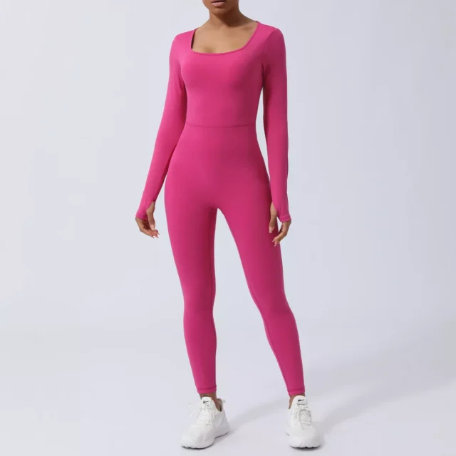 Turn heads and feel empowered in this sleek, one-piece gym jumpsuit designed for women who love to move with style and grace. This long sleeve yoga jumpsuit blends sexy elegance with serious performance. Featuring a solid color design and eye-catching open back detail, it offers the perfect mix of fashion and function. Whether you’re flowing through yoga poses, powering through workouts, or dancing your heart out, this jumpsuit supports you with comfort and confidence.