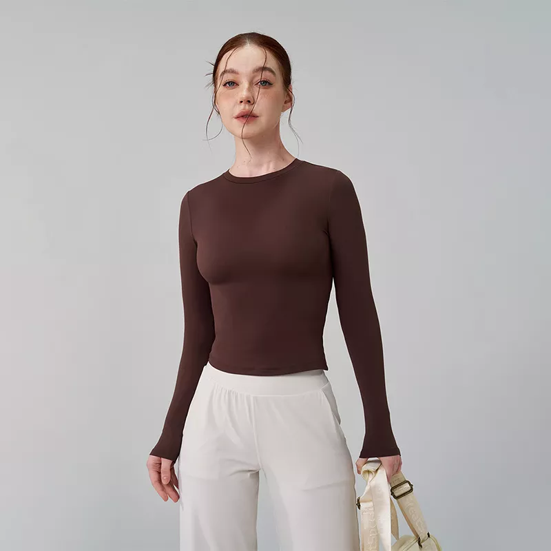 Step into comfort and performance with this sleek long sleeve yoga and fitness top, designed to keep up with your every move. Made from a premium blend of 91% nylon and 9% spandex, this top offers a perfect balance of softness, stretch, and durability. With a classic O-neck design and slim fit, it delivers a flattering silhouette while supporting you through every squat, stretch, and sprint.