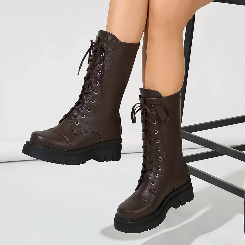 Unlike ordinary boots, these lace-up mid-calf boots combine modern practicality with timeless charm. The stitched upper ensures durability, while the platform base gives you added comfort and style. The wide opening makes them easy to slip on and off, while the mid-calf coverage offers a flattering fit that’s both feminine and versatile. Whether you’re dressing up for a casual day out or simply looking for boots you can trust season after season, these are designed to keep you looking effortlessly chic.