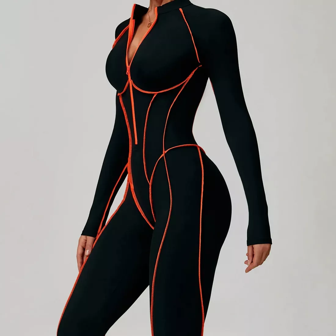 Unlike standard workout sets, this bodysuit combines sport functionality with a touch of bold style. The solid-color, streamlined design delivers a chic, minimalist look, while the zipper detail adds just the right amount of edge. With no bulky pockets and a smooth knit finish, it keeps your movement effortless and your style sharp.